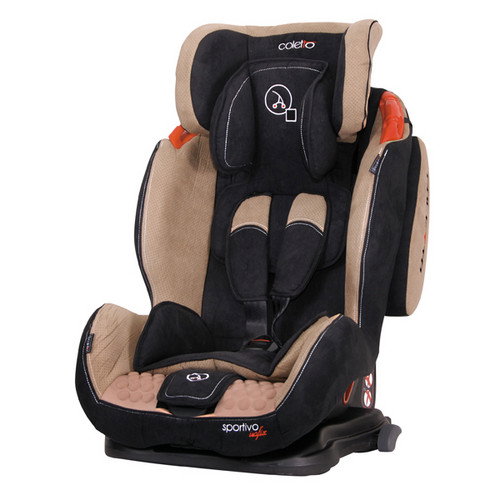 Scaunul auto Coletto Sportivo Isofix pentru copii are un design modern si sportiv si este recomandat intre 9-36 kg (9 luni - 12 ani) si are centuri cu sistem de prindere in 5 puncte si sunt reglabile pe inaltime, este dotat cu tetiera reglabila, iar spatarul prezinta 4 pozitii de reglare de la pozitia de drum pana la cea de somn. Instalarea scaunului in masina se face rapid si in conditii de siguranta in Isofix-ul masinii.Partea de sezut a fotoliului este realizata dintr-un material special ce confera modelului o caracteristica importanta mai ales la drum lung: confortul copilului dumneavoastra. Scaunul auto Coletto Sportivo Isofix are partea laterala armata care ofera protectie maxima in cazul coliziunilor laterale, sistem de protectie laterala in caz de impact (SPS), iar spatarul este prevazut si cu un reductor pentru cap, utilizabil in prima etapa a folosirii scaunului. Tapiteria este confectionata dintr-un material moale si placut la atingere ce lasa pielea bebelusului sa respire, este detasabila si usor de spalat.