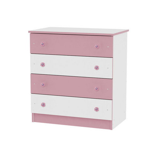 Comoda lemn 4 sertare White Pink Crossline Lorelli