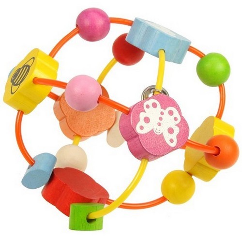 Ajuta-ti bebelusul sa descopere primele forme, culori si sunete cu aceasta mingiuta din lemn.Caracteristici: