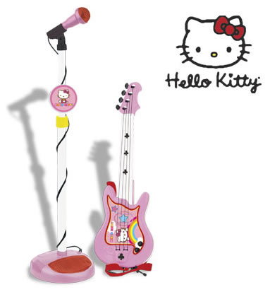 Un set exceptie special pentru fanele pisicutei Hello Kitty. Iti poti agata chitara de gat si poti canta la microfon in acelasi timp, pentru a te simti ca o adevarata vedeta rock!Caracteristici: